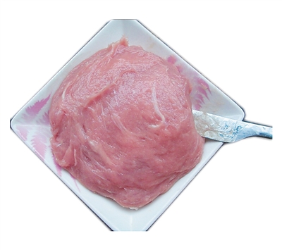 打好的肉泥爛如綿,粘如糊。