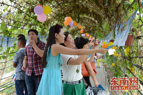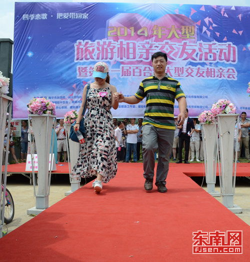 牽手 東南網(wǎng)訊(記者 鄧忠衛(wèi))8月2日, 由南平市旅游局、閩北日?qǐng)?bào)社聯(lián)合推出的"四季戀歌·把愛(ài)帶回家"2014年旅游相親交友會(huì)在建陽(yáng)市考亭揭開(kāi)神秘面紗。300多名"尋緣"男女來(lái)到由主辦方精心裝扮的活動(dòng)現(xiàn)場(chǎng),開(kāi)啟了"以旅游的名義,來(lái)一場(chǎng)說(shuō)走就走的相親"。活動(dòng)現(xiàn)場(chǎng)葡萄飄香、歡聲笑語(yǔ),浪漫氣息、愛(ài)意濃濃。 近年來(lái),南平市旅游產(chǎn)業(yè)發(fā)展迅速,為進(jìn)一步提高南平市旅游景區(qū)知名度,精心打造與周邊區(qū)域差異性旅游產(chǎn)品,充分挖掘大武夷婚戀旅游開(kāi)發(fā)的潛在價(jià)值,促進(jìn)旅游與婚戀、美食、工藝美術(shù)等特色潛力行業(yè)的融合發(fā)展,推出了以"四季戀歌"為主題的婚戀旅游系列活動(dòng),根據(jù)季節(jié)不同結(jié)合景區(qū)實(shí)際,針對(duì)性推出不同類(lèi)型,適合不同人群的旅游相親交友活動(dòng),這將有力地豐富和完善閩北婚戀旅游產(chǎn)品體系,樹(shù)立大武夷婚戀旅游目的地的新形象。