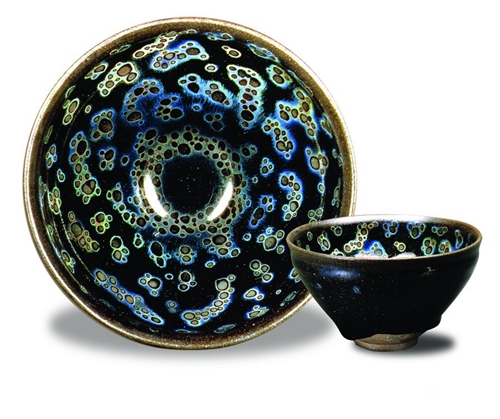 茶,發源于中國。在宋代,宋徽宗常在宮廷里以茶宴群臣,使斗茶成為一時風尚! 建盞因斗茶而生,斗茶最講究斗色,北宋重臣蔡襄在《茶錄》中記載:"茶色白,宜黑盞。"建盞盞形底小口大,形如漏斗。按造型分有敞口、撇口、斂口和束口四大類。底小口大,有利于茶香的顯現和散發,從而為斗茶高手和龍茶極品的極致發揮提供了最上乘的利器。它的窯變花紋變化多端,大體上可以分為兔毫、油滴、鷓鴣斑和曜變四種類型。兔毫盞的特征是在黑色釉層中透露出均勻細密的筋脈,像兔子身上的毫毛一樣纖細柔長。油滴盞的主要特征是釉面的花紋為斑點狀,像夜空中的點點繁星,也像水面上漂浮的油珠。北宋初年陶谷《清異錄》:"閩中造盞,花紋類鷓鴣斑,點試茶家珍之",講的就是鷓鴣斑的釉面花紋如鷓鴣胸部羽毛的斑點。曜變盞的典型特征是圓環狀的斑點邊緣呈現以藍色為主的七彩的光暈,隨著觀察角度的改變,光暈的變化仿佛宇宙星空的景色,如星辰之光深邃幽玄,攝人心魄!是世人公認的"天下第一碗"。建窯建盞之所以成為最好的斗茶器具,還因為,建盞斗笠形態便于攪拌茶湯;盞壁較厚,利于保溫。 宋徽宗的《大觀茶論》記載:"茶盞貴為黑,玉毫條達者為上"。建盞以其造型古拙、胎體厚重、釉色瑩潤,窯變釉面五彩斑斕、瑰麗悅目的特質而艷冠群芳,成為皇族、士大夫、社會名流不惜重金追尋的寶物。 "建盞"獨受青睞,其魅力還在于:天下瓷器雖然可以在胎釉、造型、花紋上通過能工巧匠的高超技藝,創作出精美的藝術品,但是建盞的釉色斑紋是"天工"與"人巧"的高妙邂逅,所謂"入窯一色,出窯萬彩",誘發對無盡未知的無窮想象。 建窯的黑釉屬于結晶釉的范疇,含鐵量高達8%以上。在1300多度的高溫熔燒過程中,窯溫的變化,使釉面產生奇特的花紋。這些花紋與其他瓷藝華麗的彩繪或繁縟的雕飾不同,它們是釉料在一定的溫度和氣氛中產生自然變化的結果,似"窯神"冥冥之作,窯工無法預見,陶瓷界稱之為"窯變"。同樣的原料,在不同的窯爐,置于不同的窯位,不同的季節,不同的天氣,燒出的建盞紋樣釉色截然不同,變幻莫測;建窯之燒造建盞,有如母親孕育孩子,每個建盞都有不同的臉譜,每個建盞都具獨特的個性,每個建盞都獨一無二、都是孤品。 科學發展至今,茶具生產工藝已然遠超前朝,許多瓷器生產可以"按圖索驥";唯有建盞,因紋理變幻莫測,現在工藝大師依然只能"聽天由命"!為求獨具審美價值的釉面斑紋,古今中外的陶藝家嘔心瀝血,試圖尋找最合適的制瓷原料和探索最正確的燒制方法;經歷數十載、延續幾代人的求索,問世的優秀作品依然極少。可見,建盞燒造技藝是純粹的陶瓷藝術。 建盞的燒制,工序繁復:必須歷經選礦、瓷礦粉碎、淘洗、配料、陳腐、練泥、揉泥、拉坯、修坯、素燒、上釉、裝窯、焙燒等13道生產工序;必須協調坯土、釉礦、窯溫和窯中氣氛這四大燒造因素。 釉色是建盞最吸引人之所在,也是建盞制作中難度最大的一個環節。由于結晶釉在窯爐高溫中難以控制,加上氧化鐵含量高的坯體難以承受高溫,要燒制一件外觀沒有缺陷、又具美麗斑紋的建盞極為困難,宋代燒制幾千萬件建盞才能偶得一兩件最珍貴的曜變盞;燒制上百萬件建盞,才得一兩件油滴盞。 目前已知世界上僅存的三件曜變盞,分別珍藏在日本靜嘉堂文庫、藤田美術館和龍光院;日本國立博物館中,國寶級的瓷器珍品共七件,其中四件是建盞,由此可見,建盞不愧為世界陶瓷藝術的瑰寶。 宋代斗茶傳入日本后,其推崇程度不亞于中國,屬于上流社會娛樂活動的貴族文化。據公元1511年出版的日本《君臺觀左右賬記》里記載:"曜變斑建盞乃無上神品,值萬匹絹;油滴斑建盞是第二重寶,值五千匹絹;兔毫盞值三千匹絹。"三千匹絹,相當于當時兩千個勞力一年辛苦所得,由此可見建盞的珍貴和難求!建盞成為"書院茶道"指定的唯一名貴茶碗,供人們鑒賞、收藏、使用。到了16世紀,一個建盞可值傾城之價,日本武士集團爭戰,甚至為爭奪一個建盞而引發戰爭! 從古至今,慕名而來參觀、祭拜建窯遺址的各國專家學者絡繹不絕。在許多享有盛譽的陶瓷大師心中,都有一座永遠無法跨越的高山,一座讓他仰止折服、頂禮膜拜的豐碑,它就是建窯建盞的高超技藝! 走進建窯古窯遺址,看到那漫山遍野遠古遺物,不難引發思古之幽情:建盞的不朽魅力,藏在宋代大師無數次失敗的煎熬中,藏在宋徽宗高妙審美的心境中,藏在宋代文壇巨匠暢懷謳歌的詩詞中,藏在世界茶與瓷文化發展的歷史長河中。 建盞,起于唐,盛于宋,自元代中期以后逐漸被歷史的塵土所掩埋,一度陷入沉寂。1981年春,建陽瓷廠技術人員與中央工藝美術學院、省輕工研究所、省博物館等專家經過上百次試驗,終于燒制出一批兔毫斑紋的仿古建盞。經專家鑒定:這些仿古產品不僅質似,而且達到形似、神似的標準。這也標志著這一失傳七百多年的技藝,終于在瓷壇上重現光彩。 2011年5月23日,"建窯建盞燒制技藝"被國務院列入第三批全國非物質文化遺產保護名錄。今天,為傳承中華民族的這一優秀文化,建陽區委、區政府精心打造"建窯建盞"這塊"金質名片",組織成立建窯建盞協會、打造建盞文化街、建盞產業園,積極培育一批卓有成就的建盞工藝大師,加大對外宣傳推介力度,一股建盞的使用和收藏熱日益興起,建盞產業漸入佳境…… 一花一世界,一盞一桃源。建盞,源