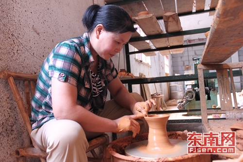 建盞傳承人之闕梅嬌 俗話說"酒香不怕巷子深"。偏居水東工業園區一隅的福建省建陽建窯陶瓷研究所,就常常有外地客商依靠手機定位專程找到這里購買心儀的建盞。12月24日,筆者在建窯陶瓷研究所的建盞工作室,見到了研究所的創辦人闕梅嬌。 置身于色彩斑斕的建盞作品間,她娟秀美麗,舉手投足恬靜中透著睿智,隱隱有大家風范。在建陽建盞業,闕梅嬌用智慧和執著演繹著自己的青青和事業,這支建盞行業的傲雪寒梅,綻放著熠熠光華。 梅花香自苦寒來 闕梅嬌對建盞的喜愛與生俱來。 建陽區水吉鎮是中國宋代八大名窯之一建窯遺址所在地。建窯以燒造黑釉茶碗(俗稱"建盞")著稱于世,與青瓷、白瓷三分天下,享譽海內外。 歷史上,建盞始燒制于五代末,兩宋時達到鼎盛,自元代初中期以后逐漸被歷史的塵土所湮沒,陷入沉寂800年。 闕梅嬌就誕生在建陽水吉這片美麗而神奇的土地上。 規模宏大的龍窯遺址,精美異常的碎瓷片,"三伏天用建盞盛菜越宿不餿"的美麗傳說,常勾起闕梅嬌對建盞的無限遐思,漸漸地她的心中有了個美麗的夢想,讓家鄉的建盞重煥光彩。 初中畢業時心靈手巧、俏麗可愛的闕梅嬌,跟父親一樣成了建陽池中瓷廠的一名工人。不管是拉坯還是畫花樣,闕梅嬌總是一學就會,有模有樣,深得師傅們的喜愛。這時,失傳800多年的建盞制作技藝也在建陽瓷廠技術人員與省輕工研究所、省博物館等專家的努力下得以復原。闕梅嬌覺得自己似乎離夢想又近了一步。可惜,三年后瓷廠倒閉。為了生計,闕梅嬌輾轉在建陽毛巾廠、服裝廠打工,下崗后又只身到廈門開起了服裝店。 也許命運之神不愿意埋沒闕梅嬌的藝術天分,冥冥中給了她提示。闕梅嬌發現自己的隔壁是一家經營黑陶和紫砂的店鋪。與黑陶的意外邂逅重新燃起了她對陶瓷的夢想與激情,抱著"做生不如做熟"的想法,闕梅嬌轉讓了店鋪,開始了學藝之路。 |