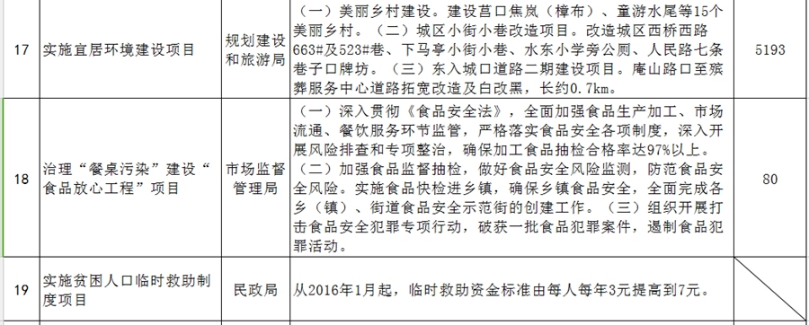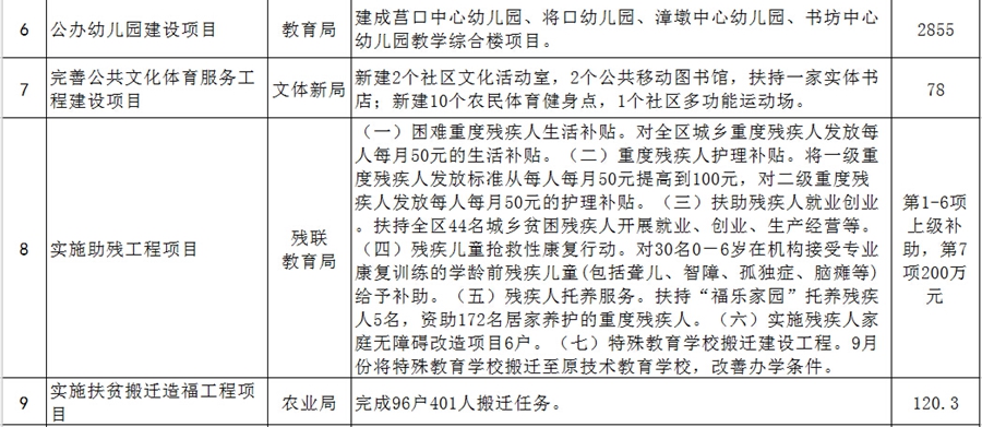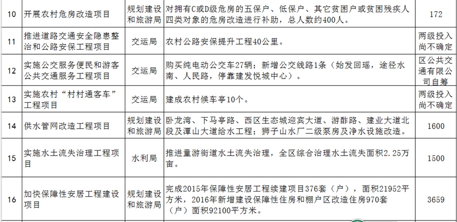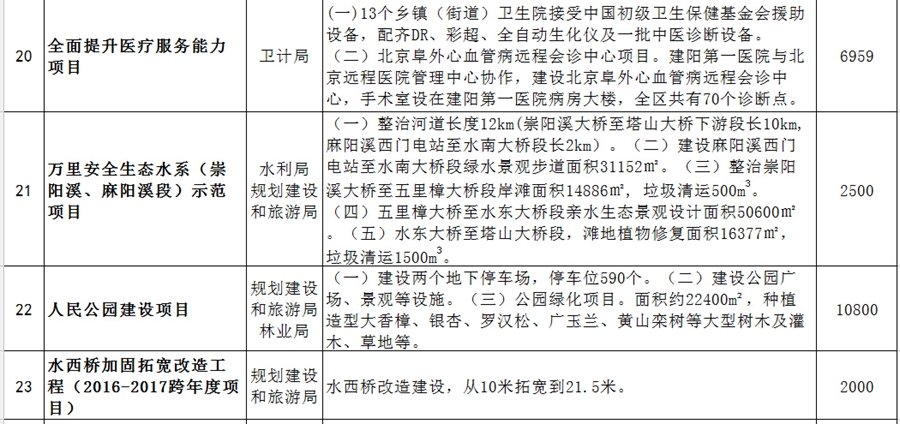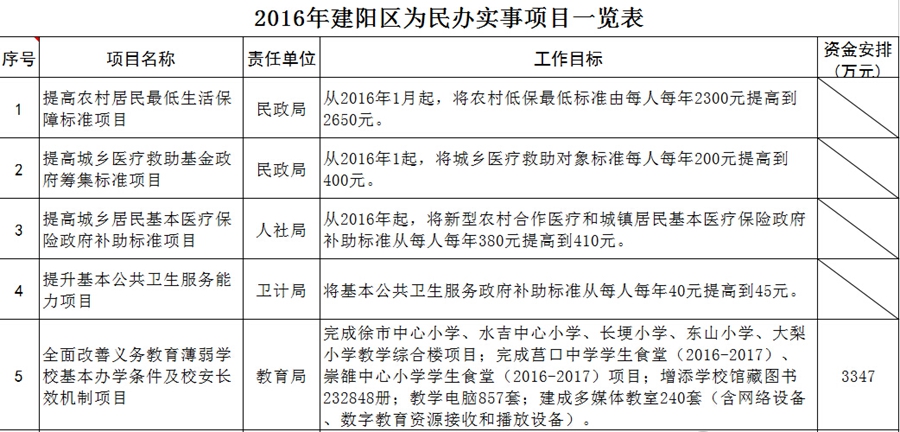 2016年建陽區為民辦實事項目一覽表