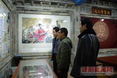 在打造宋慈文化上,司法部和省司法廳對建陽的幫助和貢獻很大。 2014年3月,省司法廳成立了“宋慈法醫(yī)學文化課題調(diào)研組”,深入研究宋慈,提煉出了“崇尚科學,去偽存真,公平正義,司法為民”、“親歷、明鑒、審慎”等宋慈法治精神,同時幫助建陽積極推動宋慈文化不斷發(fā)展。 2014年6月,在國家和省司法行政部門的推動下,建陽成立宋慈研究會。12月,司法部司法鑒定管理局在建陽舉辦“全國司法鑒定文書質(zhì)量和行業(yè)文化建設(shè)專題研討會”。 市民在宋慈文博館參觀學習。(張敏英 攝) 2016年2月,宋慈文博館開館。走在館中,既可以翻閱宋慈法醫(yī)名著《洗冤集錄》,也可以看到關(guān)于宋慈的大量文學作品、影像資料,感受宋慈雪冤禁暴,公正廉潔的精神,了解豐富的宋慈文化。