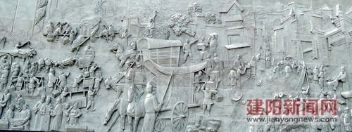 ??? 大型建本石雕群像(部分) ??? 日前,一幅長達26米,寬5米的大型浮雕--"建本"群像文化墻在麻沙鎮浮翠園落成。該文化墻的落成,與公園內先前塑立的大型石雕"建本"刻工人物像,相互輝映,為公園又增添了一大景觀。它以精美的雕刻,厚重的文化內涵、宏偉的氣勢展現在世人面前。 矗立在麻陽溪畔浮翠園內的大型浮雕"建本"群像文化墻這幅大型石雕群像圖,取材于當地著名畫家李錚先生所繪制的巨幅國畫《建本遺香圖》。這幅耗資110萬元的巨形石雕文化墻,規模宏大,結構嚴謹。整個畫面呈現出立體的效果,無論從那個角度都能清晰地觀賞到整個浮雕的細節。石雕墻的整個畫面由刻書作坊開張、書販購書、建本展銷、雕版印刷、水陸運書等五大部分組成。浮雕畫中描繪的馱隊、挑夫、騎馬、坐轎、伐木、刻版等200多個人物,栩栩如生。畫中人物、景象、細節,都安排得合情合理,疏密、繁簡、動靜、聚散等畫面關系處理得恰到好處,繁而不雜,多而不亂。整個浮雕主題突出、層次分明、紋飾清晰、立體感強。真實再現了當年"圖書之府"--麻沙刻書印刷業的繁榮景象。 早在南宋時期,麻沙與書坊曾是全國的三大刻書中心之一,刻印書籍的數量居全國之冠,素有"圖書之府"的美譽。在宋代年間,"建本"私家刻書作坊有22家,麻沙就占九成。同時,麻沙又是建本圖書銷售的集散地,水陸運輸十分發達,天下客商、販者如織。清代詩人查初白曾賦詩道:"江西估客建陽來,不載蘭花與藥材。妝點溪山真不俗,麻沙坊里販書回。" 為傳承"建本"文化,2012年,麻沙鎮投資2000萬元,建成游酢文化中心廣場和游酢文化紀念館。紀念館內辟有"建本"展覽館。之后,又在文化廣場附近,建成"建本"文化長廊。2015年7月,來自中國印刷博物館的專家一行到麻沙參觀后,一致認為:"建本之鄉"的麻沙書坊堪稱雕版印刷中心,名副其實。該館研究室主任李英說:"建本對于推動全民閱讀,起到了十分重要的作用。建本印刷數量最大,版式上有創新,上圖下文,對于促進中華傳統文化的繼承與發揚發揮了巨大作用!" ?? (李加林 文/圖) |