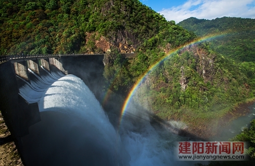 梁 勇 攝 ??? 雷公口水庫地處黃坑鎮,在武夷山自然保護區境內,處于閩江建溪水系的支流——麻陽溪上游。 ??? 從建陽城區出發到水庫需2個多小時的車程。進入保護區后,沿著崎嶇的盤山公路,汽車在山腰間盤旋上行。在兩峰最窄處一座80多米高的大壩石砌而上,無比的壯觀。水庫風光秀美,空氣清新,水質優良。晴天有風的日子,水庫溢洪飛濺的水霧,在陽光照射下,會形成各種形態的彩虹。