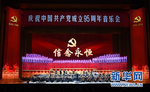 2016年6月29日,慶祝中國共產黨成立95周年音樂會《信念永恒》在北京人民大會堂舉行。新華社記者 王曄 攝
