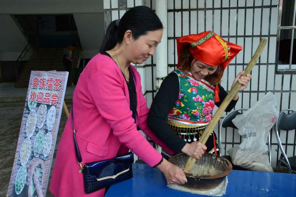參加建陽“三月三畬族烏飯節”民俗活動,有幸品嘗到黃坑三峽別具一格的畬鄉擂茶。 喝擂茶的習俗,我國很多地區都有,各有各的配方,各有各的講究。 黃坑畬鄉擂茶配方簡潔而富有意蘊,有陳皮、紅茶、芝麻、擂棍、白糖五味。 陳皮,三蒸三晾又秘藏三年的陳皮,深沉內斂,暗香浮動。這樣秘制的陳皮,具有止咳化痰、疏氣通竅、和胃止嘔、美容養顏等功效。率先將陳皮倒入擂缽,幾番擂搗,悠悠桔香漫溢四周,令人神清氣爽。品擂茶,當從此刻開始吧。 第二味,紅茶。黃坑正山小種紅茶,已有四百多年歷史,暢銷海內外。產茶區在武夷山自然保護區境內,相對海拔高,終年云霧繚繞,早晚竹嵐蒸蔚,非常適合茶葉生長,茶葉無需打農藥施化肥亦是長勢良好,產出的紅茶馨香甘甜、爽滑生津,七泡之后,茶色依然琥珀晶瑩,潤甘養喉。加入紅茶,經擂娘輕輕舂搗,一縷縷茶香追著沉郁的桔香輕飄漫舞,忽左忽右,忽上忽下,如玉女繞著大王曼妙翻飛。凝神輕嗅,有時桔香沁脾,有時茶香入肺,仿佛二重唱般諧調。 第三味,加芝麻。芝麻是擂茶主料,為陳皮、紅茶的五倍,炒熟備用。芝麻搗開,濃郁的香氣傳遍空間每一個角落,也填滿桔香與茶香纏繞的隙隙縫縫。如果說剛才的桔香、茶香給人帶來的是精神享受,此時卻是實實在在的物質期待了。腸胃咕嘟,口水暗涌,眼神勾勾。擂娘輕輕一笑,繼續腰枝裊娜地舂搗著。為了化解客人的暗急,也或許為了進一步催開你的味蕾,擂娘邊搗邊介紹說,芝麻是美容養顏的好東西呢,吃了能讓粗糙的皮膚變得細膩白皙,紅光潤澤;若是黑芝麻,還有烏發補腎之用呢。因為加有陳皮,熱熱的擂茶喝下去,還能去感冒咳嗽嘞。 擂棍,也是配方之一。擂棍用上百年的油茶樹枝做成,半米多長。隨著舂搗過程中與擂缽的磨礪,少量的油茶樹粉會摻入擂茶作料中,起著茶引子的作用,讓擂茶帶有一股遙遠的清香,品起來更有風骨。同時,油茶樹有清熱解毒、活血化淤之功效。 將以上作料慢慢搗碎后,加適量白糖,沖入滾燙的開水,攪拌均勻,濾去碎渣。一鍋濃釅香醇的擂茶就做成了。輕輕一嗅,清香、桔香、茶香如海市蜃樓般飄飄渺渺,將人帶入空茫之境;淺淺啜一口,醇厚的芝麻香又讓雙腳落到墩厚的實地。幾番品賞,身心在海市蜃樓與大地間來回飄蕩,不知陶醉何處。 畬鄉擂茶一般在節日或是招待客人時品用。固此,擂茶的每一味作料都賦予了特別的含義:陳皮乃桔皮所制,“桔”通“吉”有吉祥、吉利之意;芝麻,開花節節高,更是高大上的象征;白糖,生活甜甜蜜蜜。一杯漾郁醇香的擂茶,乃是和美諧睦的象征。 三月三,是畬族傳統節日。除了吃烏米飯,唱山歌,祭祀祖先外,畬民們三五成群聚在一起搗擂茶、喝擂茶,歡歌笑語,敘舊話新,一派祥和,像過春節一樣熱鬧。(曹長美) |