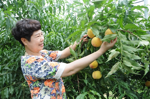 安然家庭農場:桃子滿枝頭,游客采摘樂