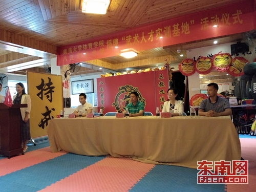 授牌儀式現(xiàn)場 朱成棟/攝 東南網(wǎng)訊(記者 陳艷 通訊員 朱成棟)6月25日上午,“集美大學(xué)體育學(xué)院武術(shù)人才實(shí)訓(xùn)基地”授牌儀式在武夷山八正道武術(shù)館舉行。集美大學(xué)體育學(xué)院院長高楚蘭、武夷山市人民政府副市長張賢軍、武夷學(xué)院人文學(xué)院黨委書記劉清華等出席授牌儀式。 據(jù)悉,武夷山八正道武術(shù)館是目前武夷山市唯一一家政府授權(quán)官方認(rèn)證的民間武術(shù)館,致力于發(fā)展武夷山市民辦教育事業(yè),宣傳弘揚(yáng)中國傳統(tǒng)文化。此次“集美大學(xué)體育學(xué)院武術(shù)人才實(shí)訓(xùn)基地”授牌儀式,旨在使高校更好地為地方經(jīng)濟(jì)建設(shè)服務(wù),培養(yǎng)更多的符合社會需求的高素質(zhì)專業(yè)人才,同時進(jìn)一步促進(jìn)高校與地方經(jīng)濟(jì)、文化、科技的交流合作。 |