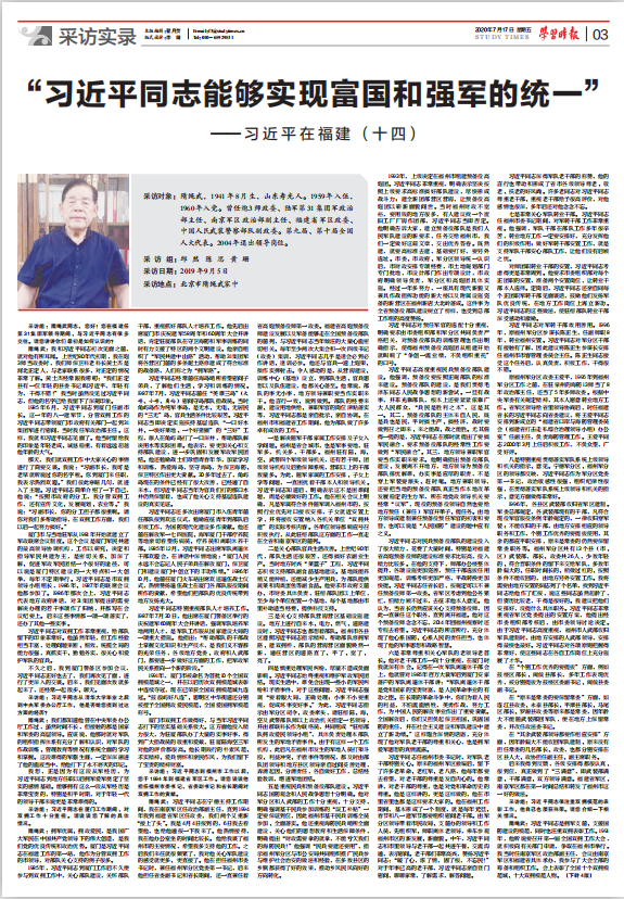 習近平在福建(十四):“習近平同志能夠實現富國和強軍的統一”