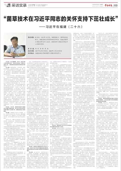 習近平在福建(二十六):“菌草技術在習近平同志的關懷支持下茁壯成長”