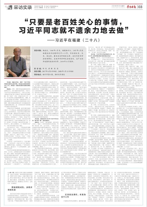 習近平在福建(二十八):“只要是老百姓關心的事情,習近平同志就不遺余力地去做”