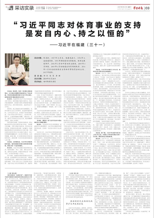 習近平在福建(三十一):“習近平同志對體育事業的支持是發自內心、持之以恒的”