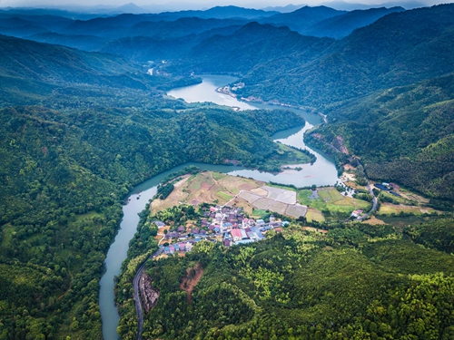 晴嵐湖全景 繆德海 攝 位于三峽響古村,有著一片寧靜美麗的晴嵐湖,凡有水處,靈氣氤氳,秀美木良,亦是如此。 美好一天是從晴嵐湖(響古水世界)中一尾魚輕輕吐出的漣漪蕩漾開始的,即使是一段喁喁低語,即使是一段輕微縹緲的晨曲,也足以撩醒岸邊樹林里宿鳥的香夢,足以打動每一個早起勞作的農人。 緩緩流經村莊的溪水飄帶一般系在響古的腰間,翩翩舞姿曼妙出一幅秀美的生態環境,翠竹依溪相伴,湖中濺起了一串串早起人們的歡聲笑語,像水一樣綿長的美好幸福生活。