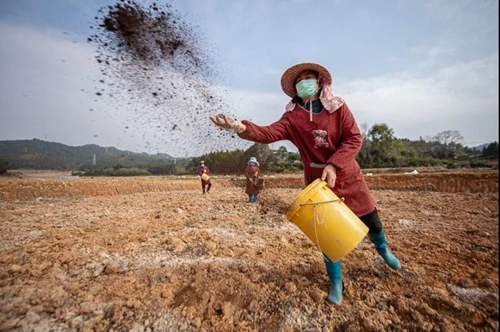 農(nóng)民有序地向地里拋灑有機肥 (伊凡 攝) “‘中國人要把飯碗端在自己手里,而且要裝自己的糧食?!暯娇倳浀倪@句話深深打動著我們農(nóng)民的心,我們誓要把‘爛田’變良田。”對丘小、水冷、泥爛、產(chǎn)量低的山壟田進行改造,林貴富說干就干。 2019年底,林貴富和合作社帶頭人一拍即合,他們逐戶解釋他們的計劃,誠意說服村民。最終成功流轉了近300畝土地,50余戶加入“改造計劃”。 “這片地,從前被分成100多丘小田,又碎又小。”林貴富告訴記者,2020年初,大家自掏腰包湊了近100萬元,開始“大刀闊斧”對山壟田進行改造。降低落差,平整梯田;重塑田埂,合并小丘;開溝排水,墊高土層……很快,近300畝的山壟田“小丘變大丘,深田變淺田”。