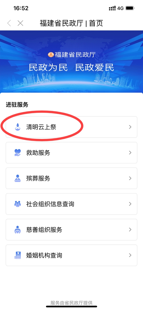 清明將至,為方便廣大群眾緬懷先人、預約祭掃,福建省民政廳依托“閩政通”信息服務平臺開設“清明云上祭”專題服務,現已正式上線運行,讓用戶足不出戶即可表達行清追思之情。操作步驟如下: