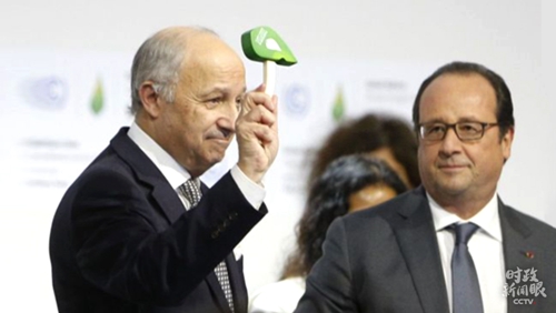 △2015年12月12日,巴黎氣候變化大會主席、法國外長法比尤斯舉起帶有大會標志的綠色小錘,宣告里程碑式的《巴黎協定》誕生。(資料圖) 中歐合作應對氣候變化,今天更為緊迫。新冠肺炎疫情觸發對人與自然關系的深刻反思,全球氣候治理的未來更受關注。