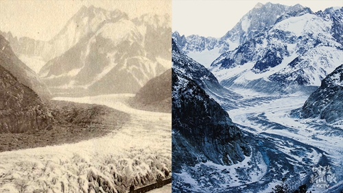 △去年2月,馬克龍總統到訪位于法國阿爾卑斯山勃朗峰山區的冰海冰川。作為法國最長的冰川,近些年它因全球暖化而急劇萎縮。這是馬克龍總統在個人社交媒體上發布的冰川消融對比照片(左為1910年,右為2020年)。 應對氣候變化:中歐合作重要支柱 中歐合作應對氣候變化,早已有之。中國與法國曾攜手推動達成和落實歷史性的氣候變化《巴黎協定》,在全球應對氣候變化合作方面發揮了引領作用。