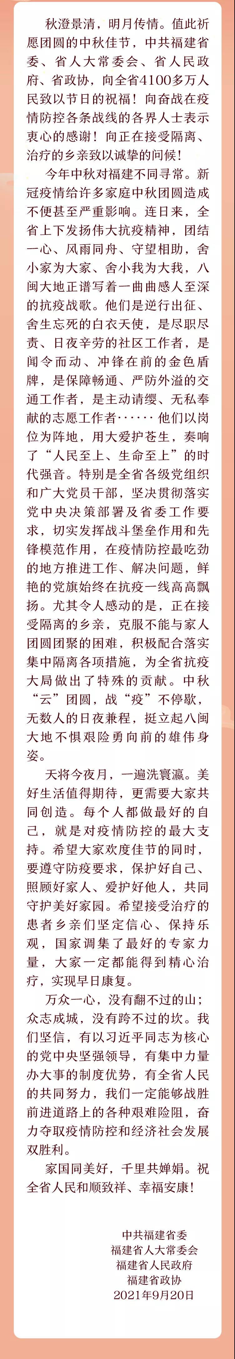 【網絡中國節·中秋】致全省人民中秋節的慰問信
