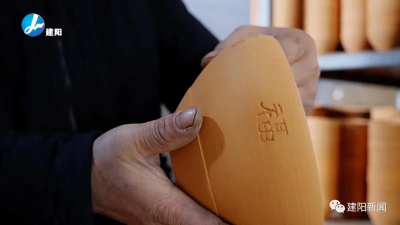 南平市非物質文化遺產建窯建盞燒制技藝代表性傳承人吳周福表示,我們在上釉的過程中,要把握釉水的厚度,讓福字的線條體現出來,這是比較難的一塊,我們這個剛剛好,上釉稍微薄一點,這個福字也就體現出來了。 吳周福介紹,大口徑柴燒建盞的成品率很低,外壁刻字的建盞燒制難度更大。他總共試燒了10多個“五福”建盞,成品率只有四分之一。