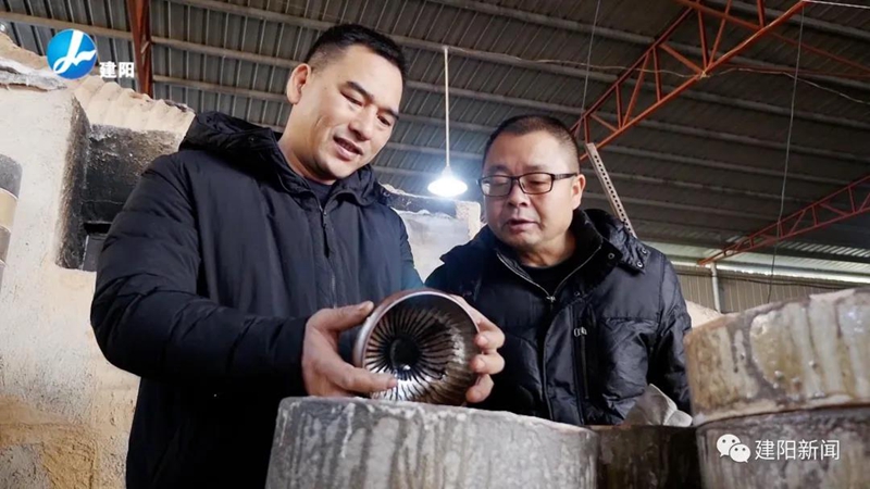 在新春來臨之際,建陽區上下積極開展“尋福、見福、送福 ”活動,廣大文化工作者和非遺文化傳承人紛紛創作福主題作品,進一步營造“福星高照、福佑中華”“福來福往福在建陽”的良好氛圍。 在非遺文化傳承人吳周福的工作室里,他向記者展示了一款最近燒制成功的“五福”建盞,只見五個福字均勻地分布在盞的外壁,一筆一劃非常清晰。吳周福告訴記者,這款柴燒建盞為彩金釉面,口徑14厘米左右。為了確保五個福字的清晰度,在制作過程中上釉環節非常關鍵。