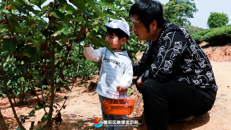 眼下正是桑葚成熟的季節,在建陽潭城街道200多畝的桑葚地里,紫紅色的桑葚果已經掛滿了枝頭,吸引了眾多周邊游客前來觀光采摘。 4月10日是個周日,一大早潭城街道周墩村的桑葚采摘園里就迎來了陸續抵達的游客,或與家人為伴,或三五好友同行,大家手提采摘藍,徜徉在桑樹間體驗著豐收的樂趣。
