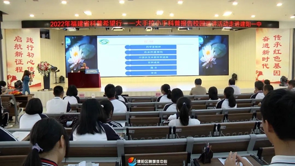 6月14日上午,2022年福建省科普希望行暨“弘揚(yáng)科學(xué)精神 獻(xiàn)禮黨的二十大”——大手拉小手科普?qǐng)?bào)告校園宣講活動(dòng)走進(jìn)建陽一中,來自中國科學(xué)院的謝華安院士為建陽一中的學(xué)子們帶來了一場(chǎng)科研與人生的精彩一課。南平市科協(xié)主席陳鐘玨、副主席陳寶珠,區(qū)委常委、統(tǒng)戰(zhàn)部長王楊參加活動(dòng)。 報(bào)告會(huì)上,謝華安院士以“人生與稻路”為主題,從科學(xué)家精神、農(nóng)業(yè)的重要性、中國雜交水稻育種進(jìn)展、育種成效等方面,講述了科學(xué)精神的內(nèi)涵,并結(jié)合自身實(shí)際,為學(xué)生們分享了中國水稻育種成就和他在科研方面的經(jīng)歷和感悟,以及對(duì)未來水稻育種的展望。