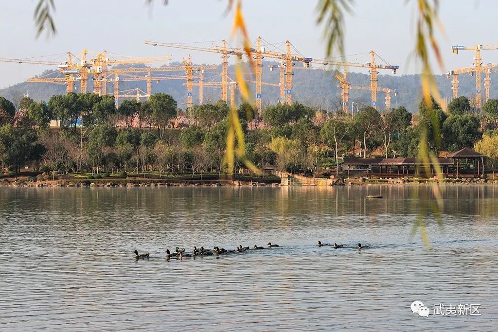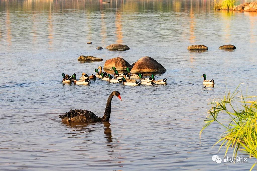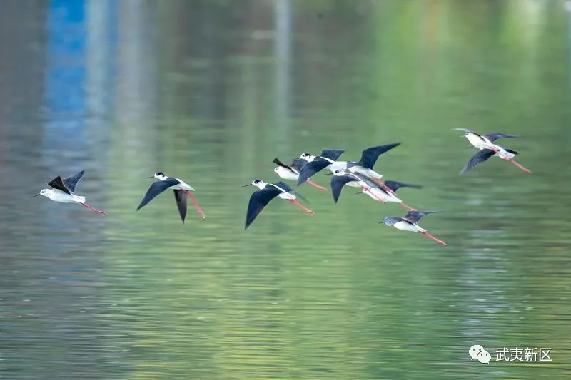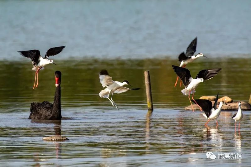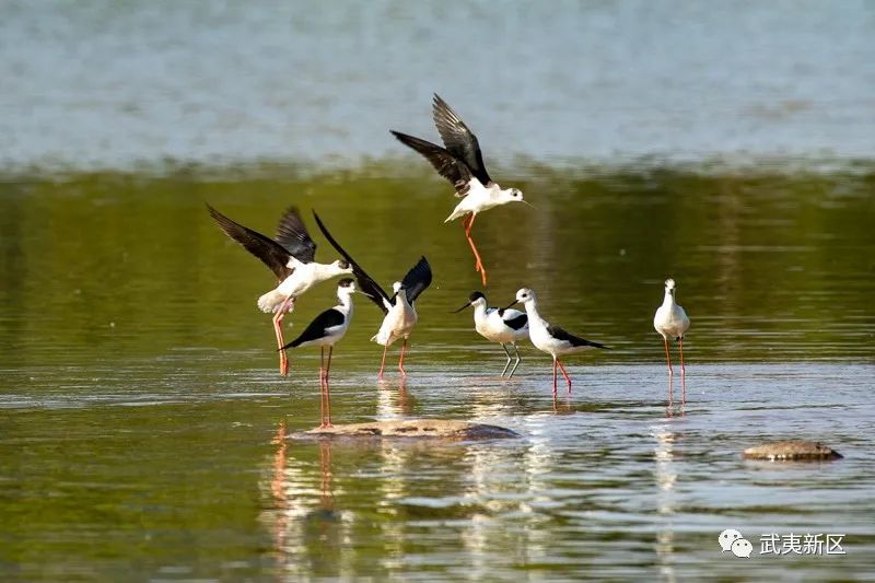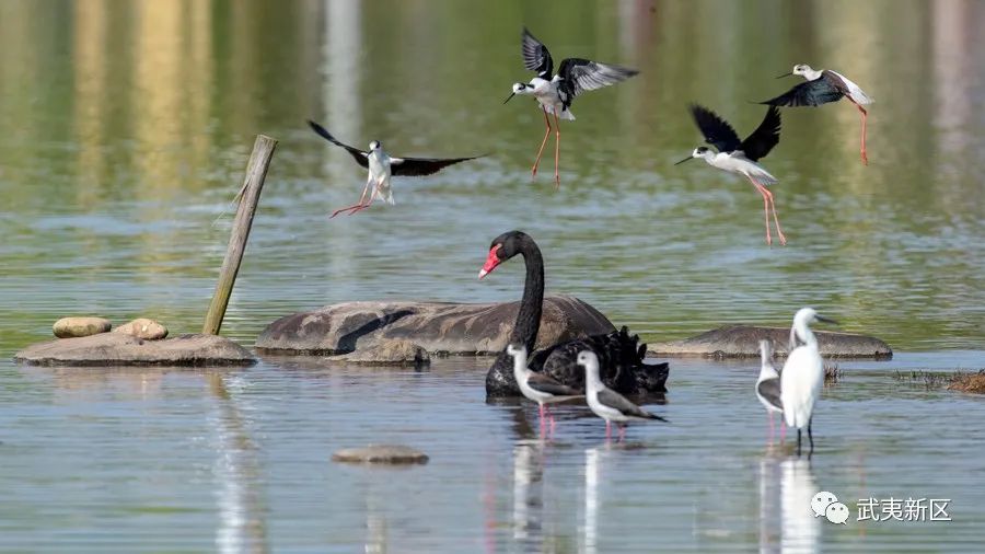 ▲武夷新區不斷提升城市品質,既注重城市基礎設施建設,更注重生態環境保護,圖為水之廳迎來黑翅長腳鷸