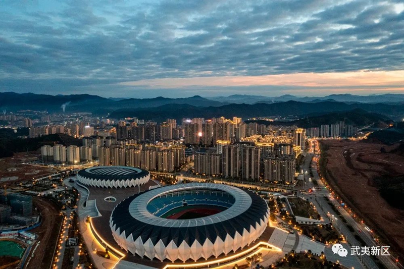 武夷新區體育中心場館夜景(鄭惠平 攝)