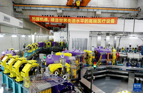 這是上海交通大學(xué)附屬瑞金醫(yī)院腫瘤質(zhì)子中心內(nèi)的質(zhì)子同步加速器區(qū)(2022年5月21日攝)。新華社記者 方喆 攝 這一治療癌癥的新設(shè)備——首臺(tái)國(guó)產(chǎn)質(zhì)子治療示范裝置,是上海光源和轉(zhuǎn)化醫(yī)學(xué)兩個(gè)大科學(xué)設(shè)施“聯(lián)姻”的結(jié)晶。“瞄準(zhǔn)最頂尖醫(yī)療科技,從原始創(chuàng)新突破到集成研究發(fā)展、產(chǎn)業(yè)應(yīng)用,我們走了一條新路。”中國(guó)工程院院士、瑞金醫(yī)院院長(zhǎng)寧光說。 2014年5月,習(xí)近平總書記在上海考察時(shí)強(qiáng)調(diào),上海要加快建設(shè)具有全球影響力的科技創(chuàng)新中心。 十年來,上海科技創(chuàng)新策源功能持續(xù)提升。從15條線站增至27條,上海光源開放多年來,這臺(tái)“超級(jí)顯微鏡”服務(wù)了3萬多名國(guó)內(nèi)外用戶;地下30米深,硬X射線自由電子激光裝置正加緊建設(shè),將推動(dòng)我國(guó)光子科學(xué)從“跟隨”到“引領(lǐng)”的飛躍;1拍瓦、10拍瓦,再到向百拍瓦功率邁進(jìn),超強(qiáng)超短激光實(shí)驗(yàn)裝置——“羲和”進(jìn)入運(yùn)行模式……如今,上海在用在建的大科學(xué)設(shè)施已有14個(gè),居全國(guó)首位。