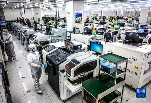 2022年5月26日,在安徽省合肥經濟技術開發區的合肥通富微電子有限公司,員工在裝片生產線上作業。新華社發(解琛 攝) 緊扣一體化和高質量兩個關鍵詞,安徽加快融入長三角一體化發展,牽頭成立長三角人工智能產業鏈聯盟等多個產業聯盟。滬蘇浙2021年在皖投資在建億元以上項目4167個,實際到位資金超過9000億元,同比增長22.6%。