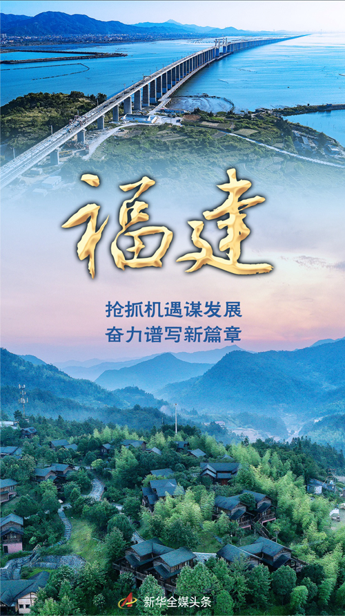 海報設計:趙丹陽 新華社福州7月22日電 題:福建:搶抓機遇謀發展 奮力譜寫新篇章 新華社記者顧錢江、涂洪長、董建國 黨的十八大以來,習近平總書記兩次深入福建考察調研,在2019年全國兩會期間參加福建代表團審議,多次對福建工作作出重要指示,為福建發展把脈定向。遵循習近平總書記擘畫的“努力建設機制活、產業優、百姓富、生態美的新福建”宏偉藍圖,福建搶抓機遇謀發展,經濟實力持續躍上新臺階,區域協同發展扎實推進,生態文明建設走在前列,人民群眾獲得感、幸福感、安全感更加充實。
