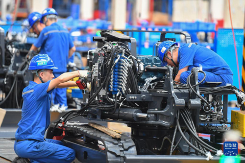 在位于湖南長沙經開區的山河智能裝備股份有限公司,工作人員在檢查機械裝備(2022年7月1日攝)。新華社記者 陳澤國 攝 三一重工、中聯重科、山河智能、鐵建重工……湖南擁有工程機械巨頭“矩陣”。2021年,全省機械工業規模以上企業4295家,較2012年增長87.4%。