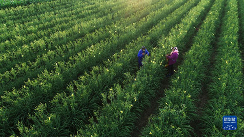 農戶在寧夏吳忠市紅寺堡區柳泉鄉黃花菜基地采摘黃花菜(2022年7月5日攝,無人機照片)。新華社記者 王鵬 攝 黨的十八大以來,寧夏把打贏脫貧攻堅戰作為頭等大事,對標“兩不愁三保障”,瞄準突出問題和薄弱環節,盡銳出戰,80.3萬貧困人口全部脫貧,9個貧困縣全部摘帽,西海固于2020年11月徹底甩掉了絕對貧困的“帽子”。 數據顯示,10年間,寧夏農民收入增長2.26倍、達到15337元,城鎮居民收入增長1.96倍、達到38291元,貧困地區群眾收入增長2.63倍、達到12786元。居民收入增速高于經濟增速,農民收入增速高于城鎮居民收入增速,脫貧群眾收入增速高于全區農民收入增速,這三個“高于”成為寧夏扎實推進全面脫貧與鄉村振興戰略有效銜接的底氣所在。