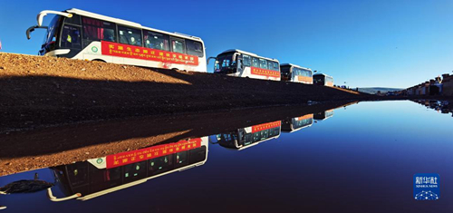 在西藏那曲市雙湖縣多瑪鄉拍攝的整裝待發的車隊,客車載著牧民前往位于山南市貢嘎縣的森布日安置點(2022年7月19日攝)。新華社記者 沈虹冰 攝 放眼雪域高原,10年來數據的變化,反映了群眾生活的巨大變遷—— 在群眾增收上,西藏城鎮人均可支配收入由2012年的18362元提高到46503元;農村居民人均可支配收入由2012年的5698元提高到16935元。 在教育事業上,2012年至2021年,國家累計向西藏投入教育經費2153.92億元。西藏已經建起包含學前教育、基礎教育、職業教育、高等教育、繼續教育、特殊教育的現代教育體系。