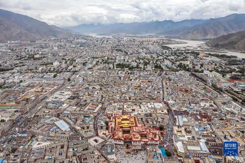 這是拉薩古城(2019年8月10日無人機照片)。新華社記者 晉美多吉 攝 拉薩八廓街附近的米珍大院,是一個漢、藏、回等多民族共居的“大家庭”。10年來,這里經過兩次改建,已實現電網入地、自來水入戶,道路硬化、綠化工程也相繼完工。 在社區黨支部的帶領下,共同學習黨的民族政策,積極參加民族團結活動,各族居民親如一家。 類似米珍大院這樣民族團結的生動案例,在西藏還有很多。10年來,全區獲表彰的全國民族團結進步模范集體140個、模范個人189人;63家單位被評為“全國民族團結進步示范單位”。2020年5月1日,《西藏自治區民族團結進步模范區創建條例》正式實施,西藏成為全國首個以地方立法形式提出以民族團結為主題的模范區創建省份。 2021年9月,由安徽省和西藏山南市共同主辦的雅礱文化旅游節在山南市舉行,兩地演員同臺表演。有的節目把西藏背鼓和安徽鳳陽花鼓融合在一起,有的節目兩地參演者共同演繹黃梅戲經典選段,讓觀眾耳目一新。 目前,西藏在學前兒童、中小學生和基層組織中全面推廣普及國家通用語言文字,在社會上廣泛開展黨史、新中國史、改革開放史、社會主義發展史教育及西藏地方和祖國關系史教育,推進中華民族共有精神家園建設,各族群眾“五個認同”不斷增強。 團結穩定是西藏發展進步的基石,凝聚起拱衛祖國西南邊陲的強大力量。