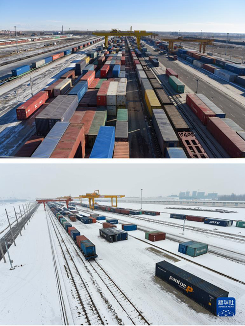拼版照片:上圖為2021年2月6日拍攝的新疆霍爾果斯鐵路口岸換裝場(chǎng)內(nèi)的換裝作業(yè)場(chǎng)景(新華社記者 丁磊 攝);下圖為2013年12月25日拍攝的新疆霍爾果斯火車站換裝場(chǎng)(新華社記者 江文耀 攝)。新華社發(fā) “絲綢之路”經(jīng)濟(jì)帶核心區(qū)重要的文化科教中心、區(qū)域醫(yī)療中心正在加緊建設(shè)。目前,新疆中外合作辦學(xué)項(xiàng)目共有7個(gè),包括交通運(yùn)輸、建筑工程、電氣自動(dòng)化等專業(yè)。在新疆,還先后設(shè)立了中俄哈蒙阿爾泰區(qū)域高校校長(zhǎng)聯(lián)合會(huì)、新西伯利亞—新疆俄語(yǔ)中心、中國(guó)中亞國(guó)家大學(xué)生文化交流基地等國(guó)際交流平臺(tái)。 此外,新疆與國(guó)外24所大型醫(yī)院建立了跨境遠(yuǎn)程醫(yī)療服務(wù)平臺(tái),搭建起輻射周邊的“云醫(yī)院”;絲綢之路經(jīng)濟(jì)帶創(chuàng)新驅(qū)動(dòng)發(fā)展試驗(yàn)區(qū)建設(shè)加快推進(jìn),科技合作覆蓋45個(gè)國(guó)家和地區(qū)(組織)、400多家科研機(jī)構(gòu)。 沿著習(xí)近平總書記指引的方向,完整準(zhǔn)確貫徹新時(shí)代黨的治疆方略,新疆各族兒女凝心聚力、踔厲奮發(fā),在新時(shí)代新征程上不斷譜寫建設(shè)美好新疆的新篇章。 視頻記者:杲均豐 白志強(qiáng) 海報(bào)設(shè)計(jì):潘紅宇 |