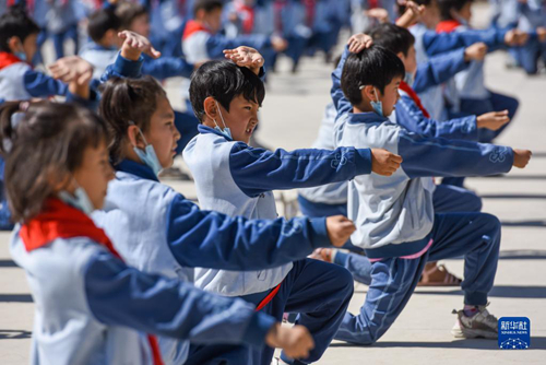 在新疆阿克蘇地區(qū)烏什縣依麻木鎮(zhèn)國(guó)家通用語(yǔ)言小學(xué),學(xué)生們?cè)谧稣n間操(2022年6月8日攝)。新華社記者 丁磊 攝 如今,新疆各族群眾逐步實(shí)現(xiàn)在空間、文化、經(jīng)濟(jì)、社會(huì)、心理等方面的全方位嵌入,中華民族共同體意識(shí)在各族人民心中深深扎根,激發(fā)出同心共筑中國(guó)夢(mèng)的強(qiáng)大力量。 推動(dòng)新疆更好更快發(fā)展 2014年習(xí)近平總書記在第二次中央新疆工作座談會(huì)上指出,要堅(jiān)定不移推動(dòng)新疆更好更快發(fā)展,同時(shí)發(fā)展要落實(shí)到改善民生上、落實(shí)到惠及當(dāng)?shù)厣稀⒙鋵?shí)到增進(jìn)團(tuán)結(jié)上,讓各族群眾切身感受到黨的關(guān)懷和祖國(guó)大家庭的溫暖。 黨的十八大以來,新疆一直處于基礎(chǔ)設(shè)施建設(shè)高峰期。在吐哈盆地,一座座太陽(yáng)能發(fā)電站正在把豐富的光熱資源轉(zhuǎn)化為電力;在伊犁河谷,一個(gè)個(gè)水利工程滋養(yǎng)著萬(wàn)畝良田。2021年,新疆實(shí)現(xiàn)地區(qū)生產(chǎn)總值1.6萬(wàn)億元,固定資產(chǎn)投資突破8200億元,主要指標(biāo)超額完成全年目標(biāo)任務(wù),實(shí)現(xiàn)了“十四五”良好開局。