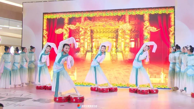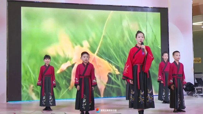 開場舞《戰狼》拉開了演出的序幕。童游中心小學和叮丹舞蹈藝術教育的孩子們分別帶來了朗誦《春草夢》和舞蹈《舞薈萃》。“揚帆計劃”的學生們表演的情景劇《揚帆最牛宿舍》把大學生暑期實踐工作和人才回歸工程等政策,以風趣幽默的方式呈現出來。古箏舞蹈《萬疆》、獨唱《有我》以及《點茶展示》等一個個精彩節目的輪番上演,引得群眾駐足圍觀。最后,匯報演出在群舞《相和歌》中落下帷幕。