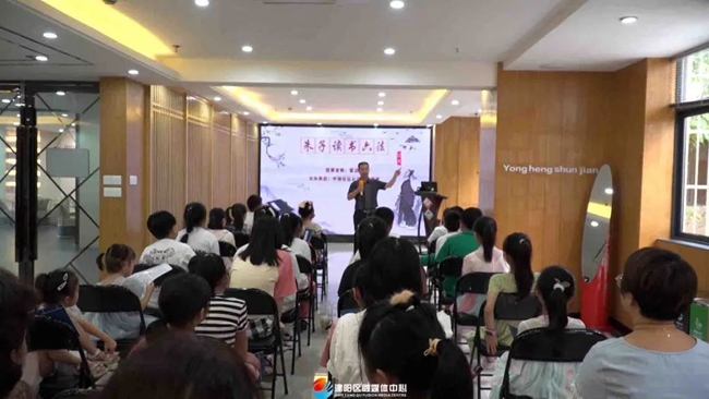 近年來,潭城街道緊緊依托新時代文明實踐站,圍繞“為民服務”這一主題主線,以公益性為導向,開設中南社區公益課堂,讓附近的居民不進校門,就可以免費學習所需要的知識。 8月12日,中南社區公益課堂開講,吸引了不少學生和家長前來聆聽。 正在為大家講課的是西門小學副校長雷正明,他參與編寫了《朱子文化中學讀本》《朱子文化小學讀本》《朱子讀書六法》等18本書籍。今天的講座,他給大家解讀的是《朱子讀書六法》。