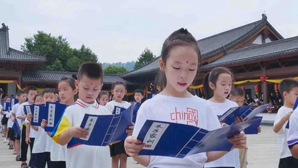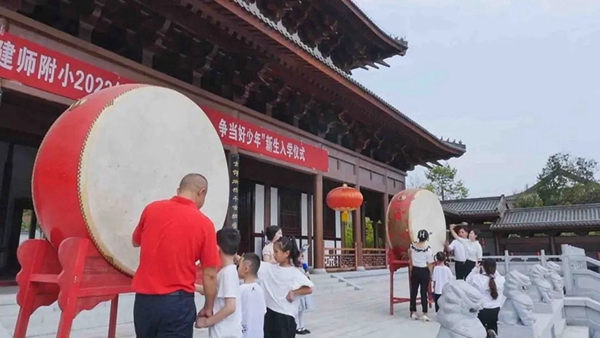 擊鼓明志樹理想。以示學(xué)童從今啟蒙,告別蒙昧。在師長的引領(lǐng)下,學(xué)習(xí)知識(shí),學(xué)習(xí)做人。 活動(dòng)在全體新生誦讀《朱子家訓(xùn)》中圓滿結(jié)束。(黃子榮 劉劍鋒 陳艷芳) |