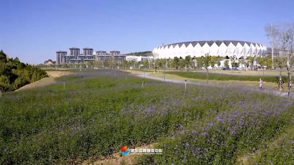 花海公園總面積約44.68公頃,其中花海建設面積約34.7公頃,邊坡處理面積約9.98公頃;項目設計以“時間的芬芳”為主題概念,長遠期結合,建設“隨時間變化”的公園。并預留大量的彈性空間,由東到西依次形成“陽光草坪—花海—花化彩化喬木帶—自然山林”的富有層次的景觀空間,并有一條從北到南,銜接片區綠道,穿梭其間的慢行道。 項目負責人劉偉偉說:“整個項目包括停車場等一些服務性建筑,包括洗手間、觀景臺,一些裝配式建筑,一條三米五的原路和一條兩米的慢行步道,整體種植多種花卉景觀,包括一些樹木。” 公園內包括草地空間約21公頃,草花景觀約7.15公頃,花化彩化喬木約2000株,海綿溝及生態蓄洪雨水花園面積約1.55公頃,碎石園路、廣場面積約2.5公頃。