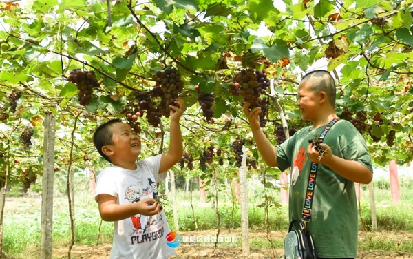 培育黨員致富帶頭人 大力發展葡萄種植 現代化大棚中一排排葡萄架依次排列,新播種的草莓苗長勢喜人。記者近日走進建陽區麻沙鎮水南村鮮美果蔬農場,水南村葡萄種植大戶劉貴道正和家人一起忙碌,協作完成“菌棒剝離”,為給葡萄藤施秋肥做準備。“目前我們流轉近200畝土地,建設現代化智慧農業示范園。通過返鄉辦農場,帶領鄉親們一起致富。”劉貴道說。 鄉村要發展,人才是關鍵。水南村村黨支部書記蔡東明曾是水南村的致富能人,從2018年被選為“領頭雁”到順利實現“一肩挑”任務,是“水南之變”的親歷者。2018年開始,水南村組織村“兩委”骨干走出去學,學回來干,在國內外學習先進技術,帶領村民試種陽光玫瑰等新品種葡萄。產業要振興,行家里手當先鋒。村黨支部深入推進黨員致富帶頭人培育行動,水南村原黨支部書記劉貴道帶著技術返鄉創業。