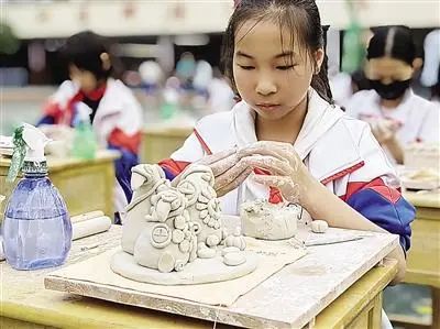 比賽現(xiàn)場 搓、揉、捏、拍、打、敲……參賽的100多名學(xué)生各施所長,在短短的時(shí)間內(nèi),一個(gè)個(gè)逼真的雕塑就初具雛形,這些作品雖顯稚嫩,但形態(tài)各異,活靈活現(xiàn)。 “我們通過開設(shè)建盞陶瓷藝術(shù)課程,讓學(xué)生深入了解家鄉(xiāng)的非遺文化,在學(xué)瓷、知瓷、言瓷、愛瓷中,把當(dāng)?shù)貧v史悠久的建盞陶瓷文化發(fā)揚(yáng)光大。”學(xué)校負(fù)責(zé)人說。 近年來,水吉中心小學(xué)為推進(jìn)“雙減”工作,落實(shí)“五育并舉”,發(fā)揮建盞之鄉(xiāng)的地緣優(yōu)勢,把建盞陶瓷藝術(shù)納入校本課程,作為課后服務(wù)項(xiàng)目。2020年6月,學(xué)校“建盞陶藝特色”被確定為福建省第二批中小學(xué)勞動(dòng)教育實(shí)踐特色項(xiàng)目。學(xué)生劉勛華的陶藝作品《造型表現(xiàn)》榮獲福建省小學(xué)、初中美術(shù)作業(yè)小學(xué)組一等獎(jiǎng),學(xué)生范家樂的陶藝作品《盤泥條》榮獲小學(xué)組三等獎(jiǎng),并被收入美術(shù)教材。(羅道明) |