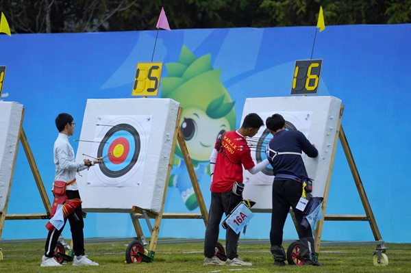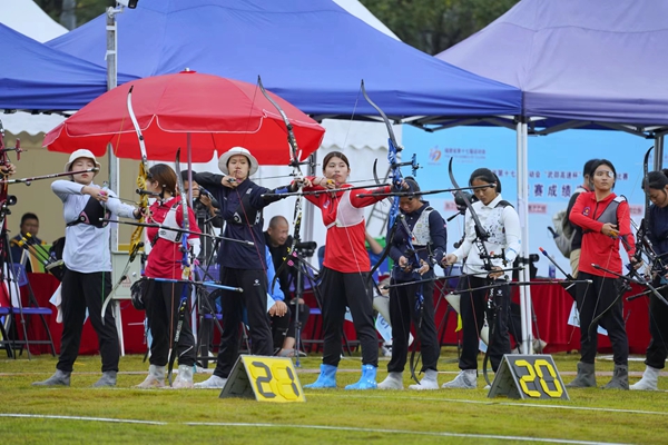 開賽首日進行的是男子和女子甲、乙組個人雙輪第一輪的比賽。彎弓拉弦、屏氣凝神、仔細瞄準、開弓射箭……賽場上,運動員們全神貫注投入比賽,用精湛的射術展開了激烈對決。