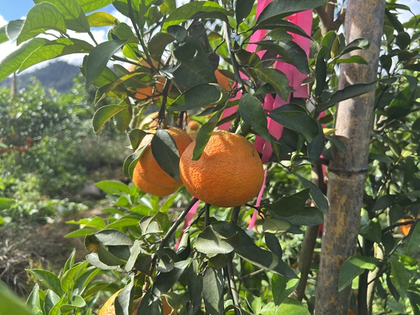紅美人最早源于日本,屬于名貴且稀有的柑橘品種。紅美人完美綜合橘子和橙子的特性,汁水豐足,唇齒留香,回味甘甜,備受消費者青睞,擁有“柑橘皇后”“天然榨汁機”的美譽。 “今年產量能達到2萬斤,年產值達20萬元,預計明年超十萬斤。”作為紅美人柑橘采摘園創始人之一,陳芳富與三峽民族村種植大戶張文清合作創辦老樹林生態農林發展有限公司,于2020年從浙江象山引進愛媛28號“紅美人”,經過精心養護,100多畝的“紅美人”迎來首次豐收。 “我每年都會去外地考察學習,積極購進金桔子、無花果、油茶等各類樹苗,不斷嘗試適合本土種植的農產品。在偶然間發現‘紅美人’這個品種,果肉多汁、皮又薄,在建陽少有人種植,當時就買了上千斤果子回來售賣,效益非常不錯。”陳芳富當即決定種植“紅美人”。