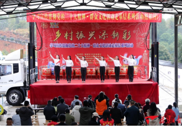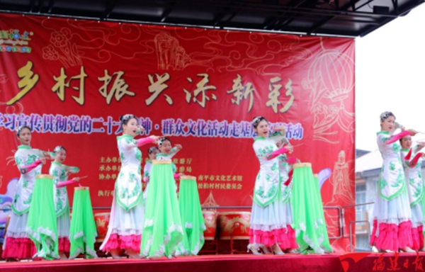 1月13日,由福建省文化和旅游廳主辦、南平市文化和旅游局承辦的“鄉(xiāng)村振興添新彩”學(xué)習(xí)宣傳貫徹黨的二十大精神?群眾文化活動走基層系列活動在南平市建陽區(qū)將口鎮(zhèn)松柏村村委會廣場舉行。 演出在舞蹈《龍騰虎躍幸福鼓》中緩緩拉開序幕,翻飛的舞步、深情的旋律,表達出了對祖國的心聲和對黨的深情。隨后,獨唱、小品、南詞表演唱、歌舞等節(jié)目輪番上演,將現(xiàn)場氣氛不斷推向高潮。 “春暖大地花盛開,昂首奮進新征程,振興鄉(xiāng)村展風(fēng)采……”精心編排的音樂群口快板《貫徹落實二十大 振興鄉(xiāng)村正當時》,通過朗朗上口的快板詞,將理論宣講融入唱演,也讓黨的二十大精神“聲”入心人。