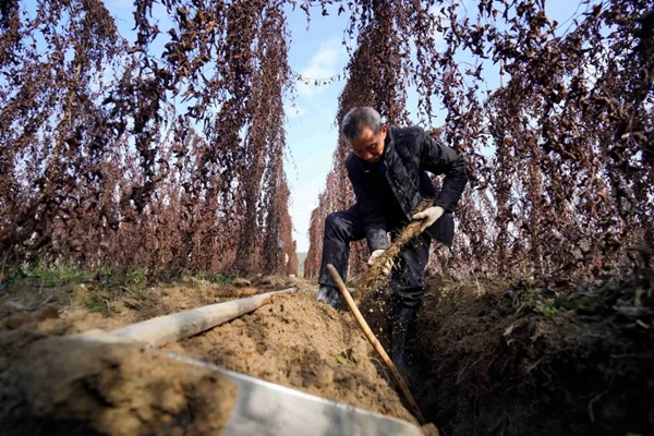 種植戶采挖淮山 (吳大灼 攝) “剛開始種淮山的時候也沒想過,一根小小的山藥棍,竟能撬動村集體經濟的快速發展。”麻沙鎮江壩村淮山種植戶陳國敏說道。