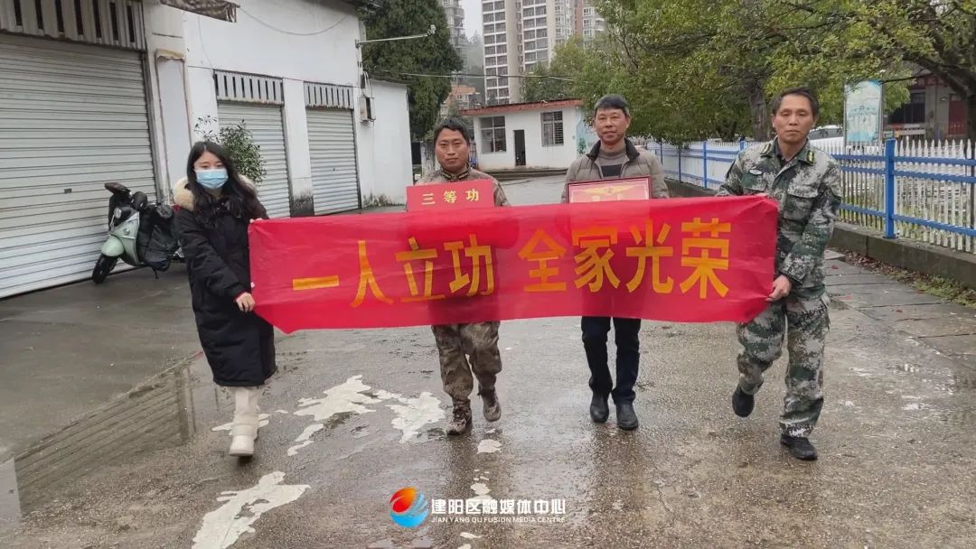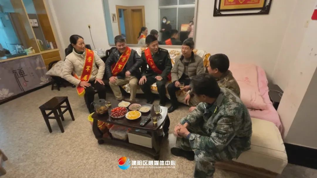 2月8日,建陽區退役軍人事務局、童游街道武裝部工作人員前往水東社區,為吳澤昊同志家庭送上喜報和慰問金,把黨和政府、軍隊的關懷和溫暖送到軍屬家中。