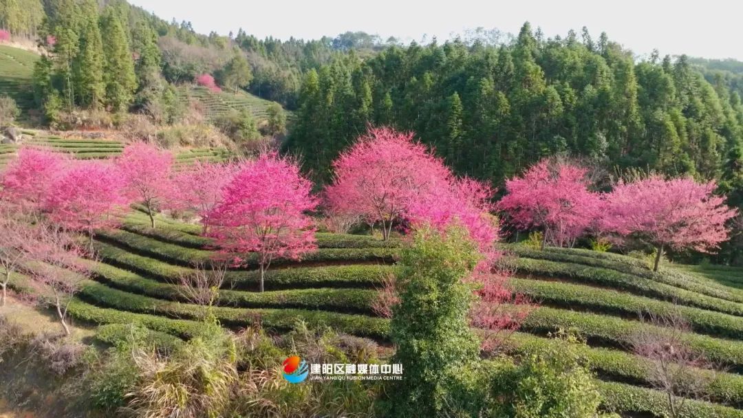 滿園春色關不住,櫻花浪漫是此時。眼下,正是櫻花盛開的季節,將口鎮松柏村的櫻花如約綻放,吸引了不少游客前去拍照打卡,感受這場“櫻花盛宴”。 2月18日,記者在將口鎮松柏村三疊石茶山看到,400棵櫻花樹沿著茶山生長,高低錯落,絢爛的色彩為翠綠的山谷染上“一抹粉紅”。成片的櫻花,花蔓枝頭,游人徜徉花海,享受春意。 游客張庭:“這邊山很高,上來以后空氣特別好,花也確實美。這個時候是剛開放所以特別美,剛好是茶跟櫻花一起種,所以整個看去就特別不一樣。”