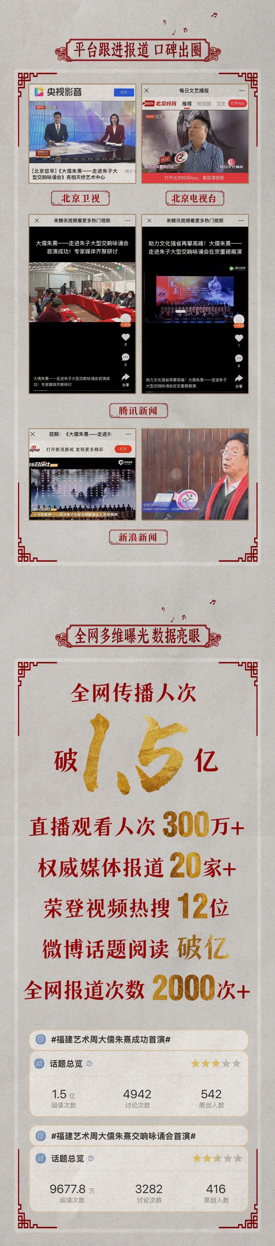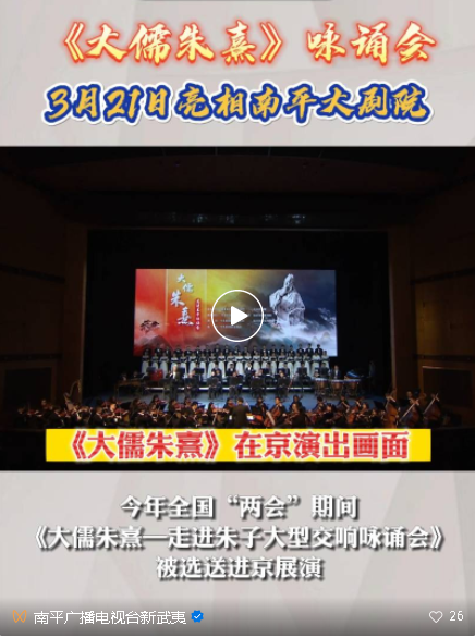 今年全國“兩會”期間 《大儒朱熹——走進朱子大型交響詠誦會》 就被選送進京展演 全網傳播人次破1.5億 集中展現了南平近些年 加強朱子文化精品創作的 最新成果 ↓↓↓